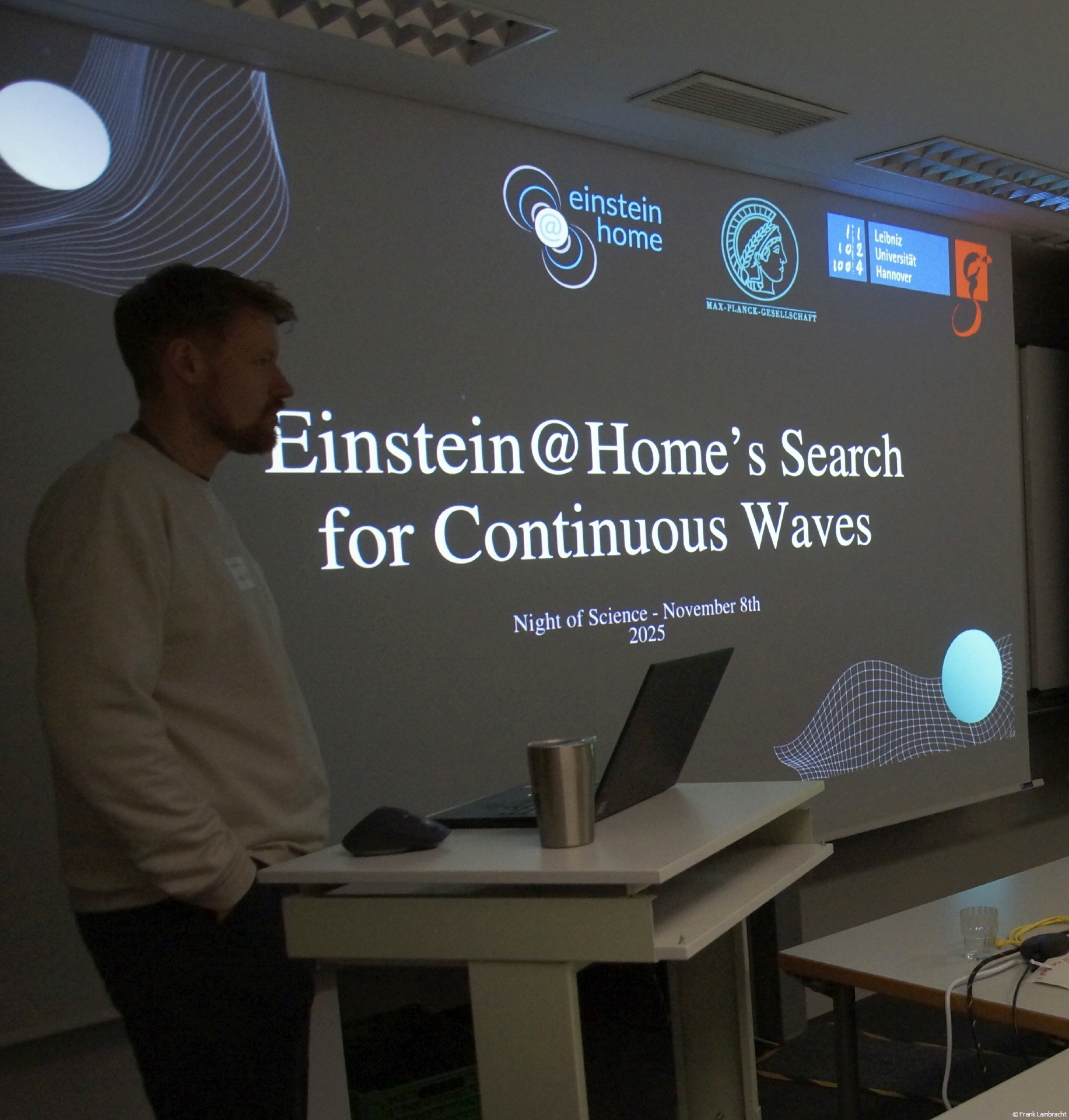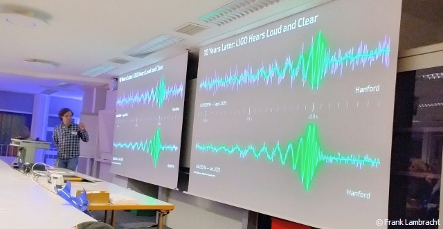 Der Vortrag von und mit Benjamin Knispel feierte das zehnjährige Jubiläum der ersten direkten Beobachtung von Gravitationswellen (GW150914) und befasste sich mit den Erkenntnissen dieses neuen astronomischen Zeitalters:
