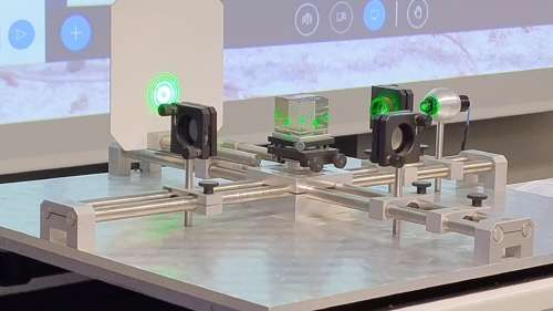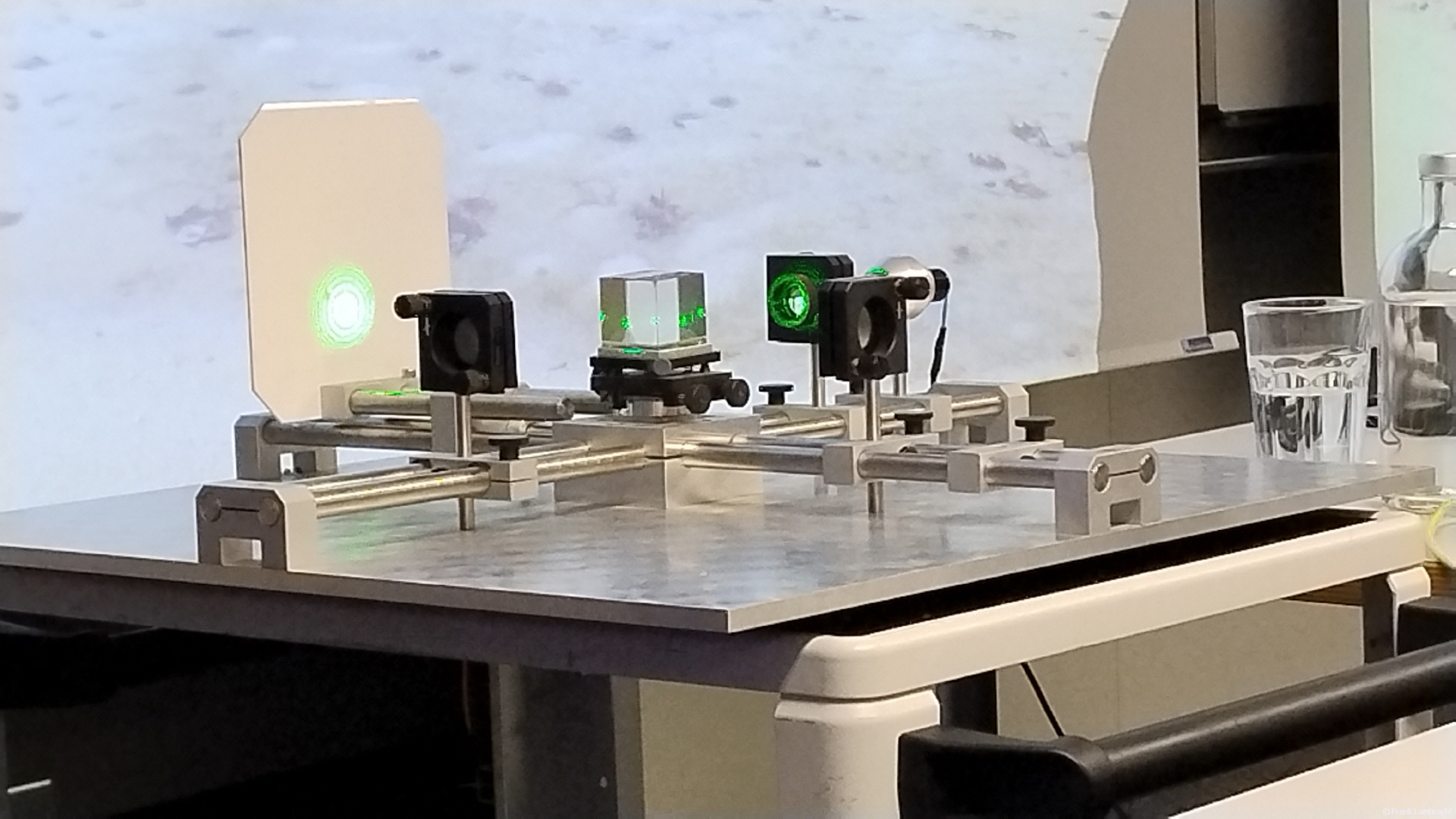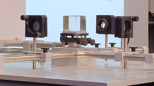 Das Michelson Interferometer: Eine live aufgebaute Version des Interferenzmessgeräts (dem Herzstück von LIGO und LISA) demonstrierte eindrücklich, wie minimalste Längenänderungen, wie sie durch eine Gravitationswelle verursacht werden, überhaupt messbar sind.