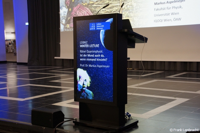 Der Vortrag „Ist der Mond auch da, wenn niemand hinschaut?“ fand wie von Ihnen angegeben am 29. November 2025 um 19:00 Uhr im Lichthof der Leibniz Universität Hannover statt. Der Titel ist ein berühmtes Zitat und eine Metapher aus der Quantenphysik, das auf philosophische und physikalische Grundfragen der Realität abzielt. Der Vortrag behandelte unterhaltsam die Schnittstelle zwischen klassischer Physik, Quantenphysik und Philosophie.