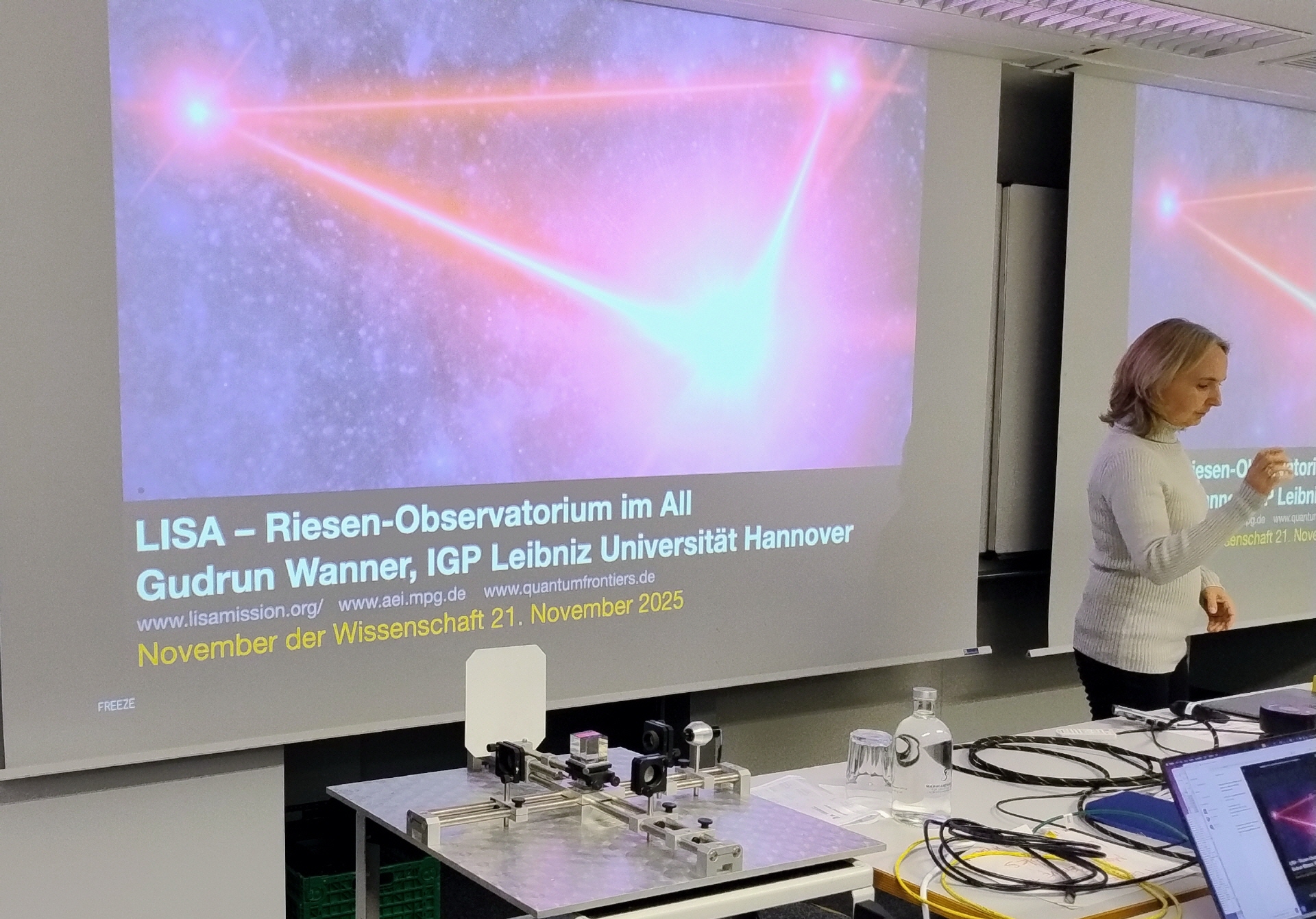Was die Veranstaltungen am AEI zusätzlich bereichert hat, war die Nähe zur Forschung. Die Vorträge wurden durch, anschauliche Demonstrationen ergänzt, die selbst komplexe Konzepte greifbar machten: