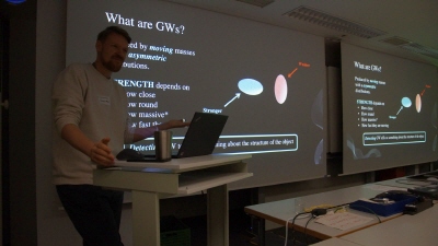 Im Rahmen von „Die Nacht, die Wissen schafft“ entführte uns der britische Astrophysiker Dr. Gareth Cabourn Davies in die Welt der Schwerkraftwellen.