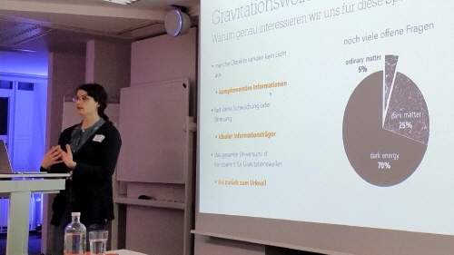 Ein Blick in die nahe Zukunft der Gravitationswellen-Forschung im Weltall bot der Vortrag zum LISA Pathfinder von und mit Dr. Sarah Paczkowski.
