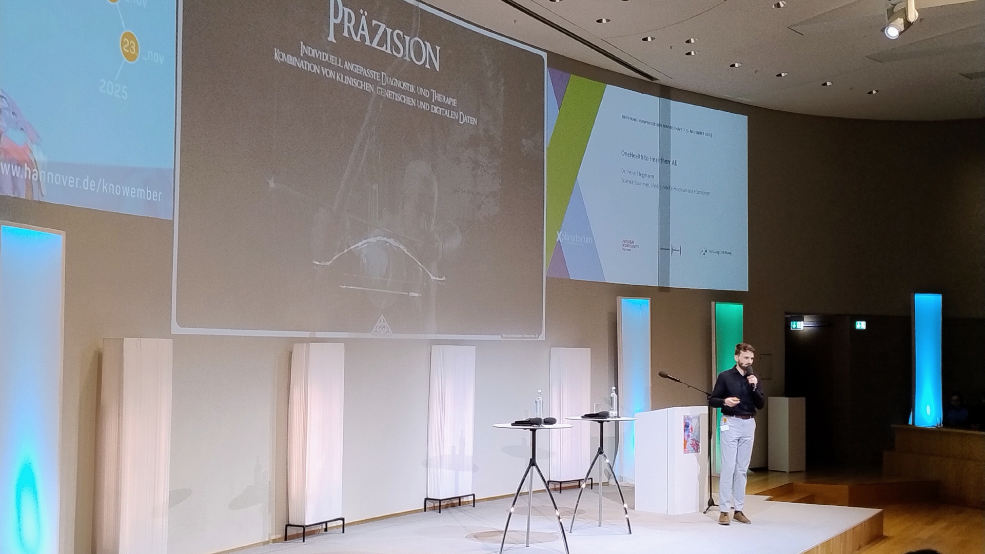 Meine Reise in den Knowember begann am 5. November 2025 bei der Auftaktveranstaltung im Xplanatorium von Schloss Herrenhausen. Unser Oberbürgermeister Belit Onay war auch dabei und hat den zahlreiche erschienenen Teilnehemern Lust auf ein buntes Feuerwerk der Forschung gemacht. Der Titel der Auftaktveranstaltung: „Fit für die Zukunft – Forschung aus Hannover für ein gesundes Leben“, verrät schon, wer bei der Eröffnung das Wort hatte: Hannovers Mediziner!