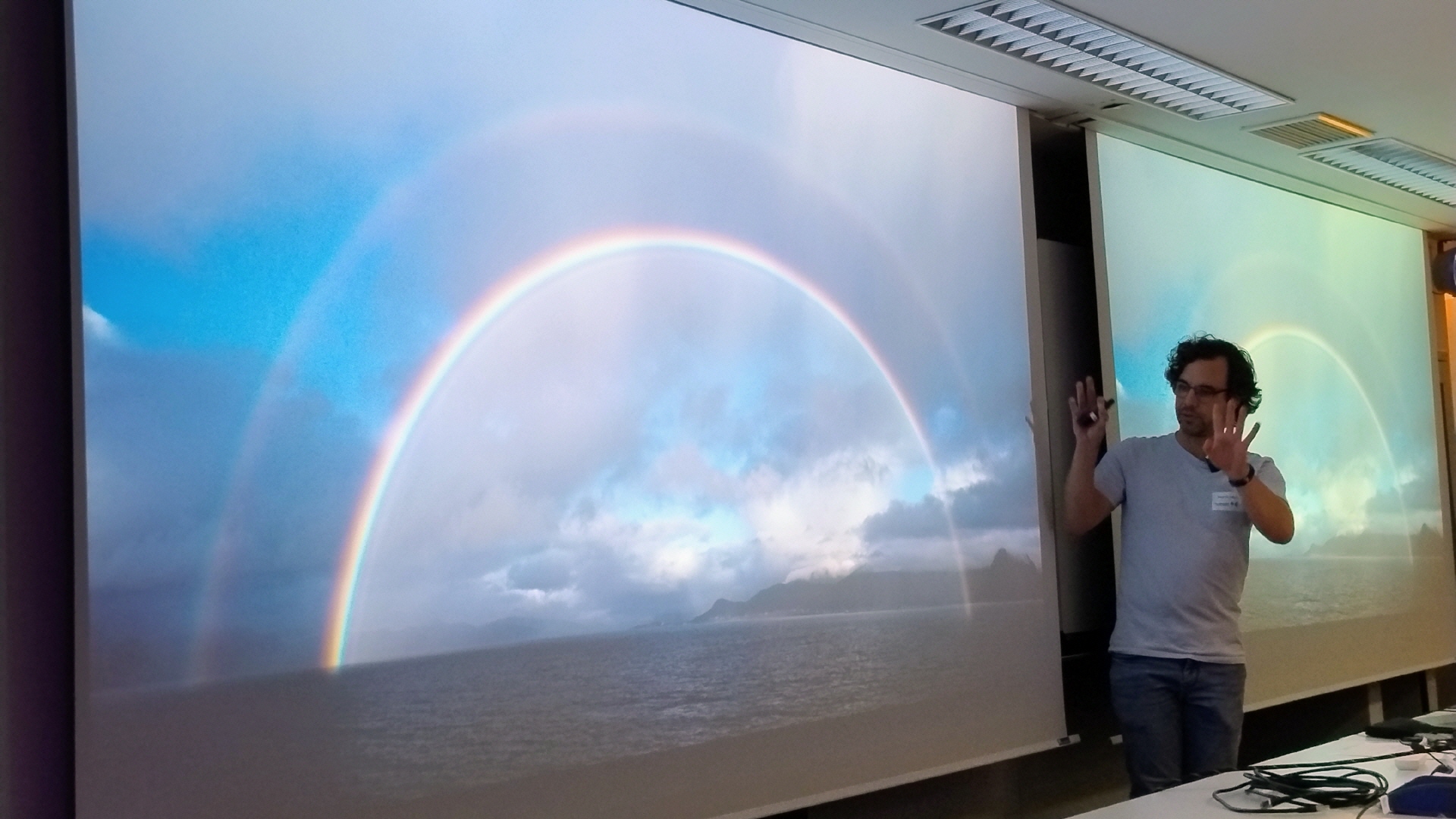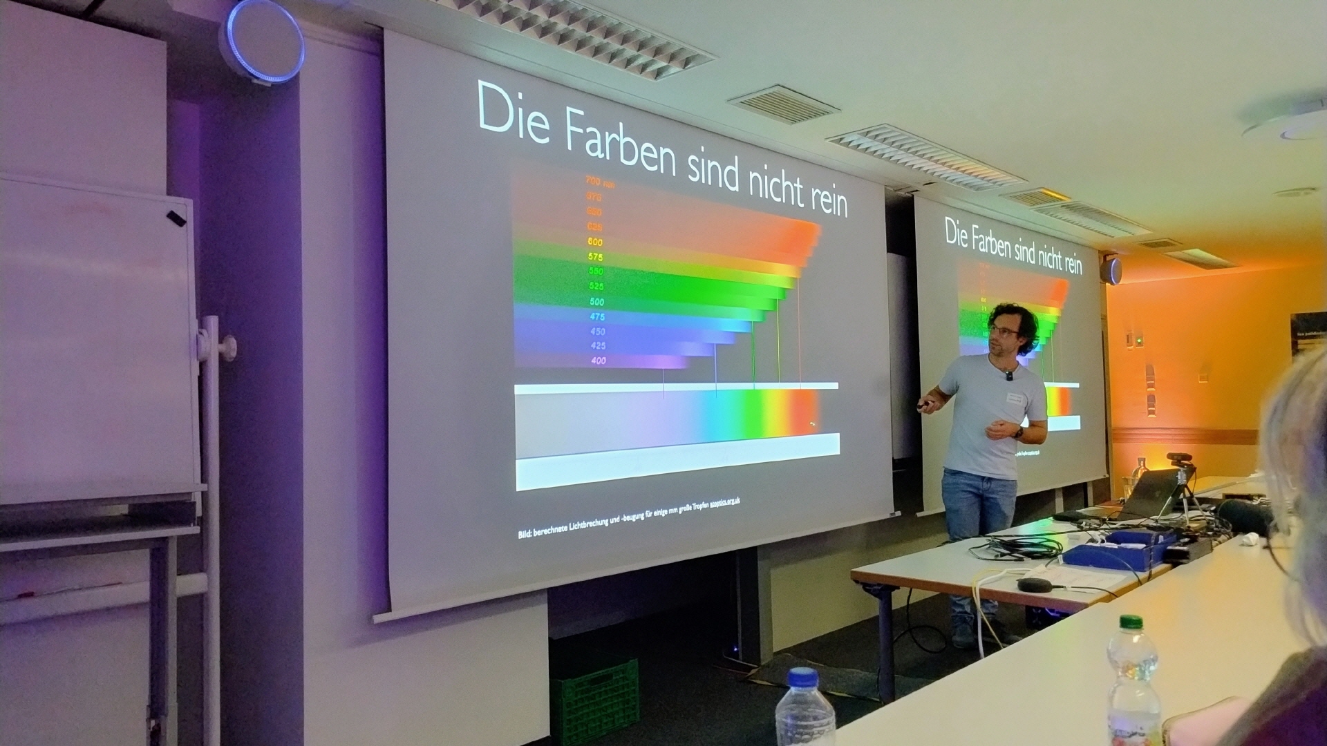 Dr. Benjamin Knispel geht es auch in diesem Vortrag um Wellen. Keine, die das Raumzeitgefüge in die Mangel nehmen, sondern die, die wir sehen. Es darum, welche Phänomene Licht in unserer Atmosphäre verursacht. Denn es gibt weit mehr zu sehen, als den Regenbogen.