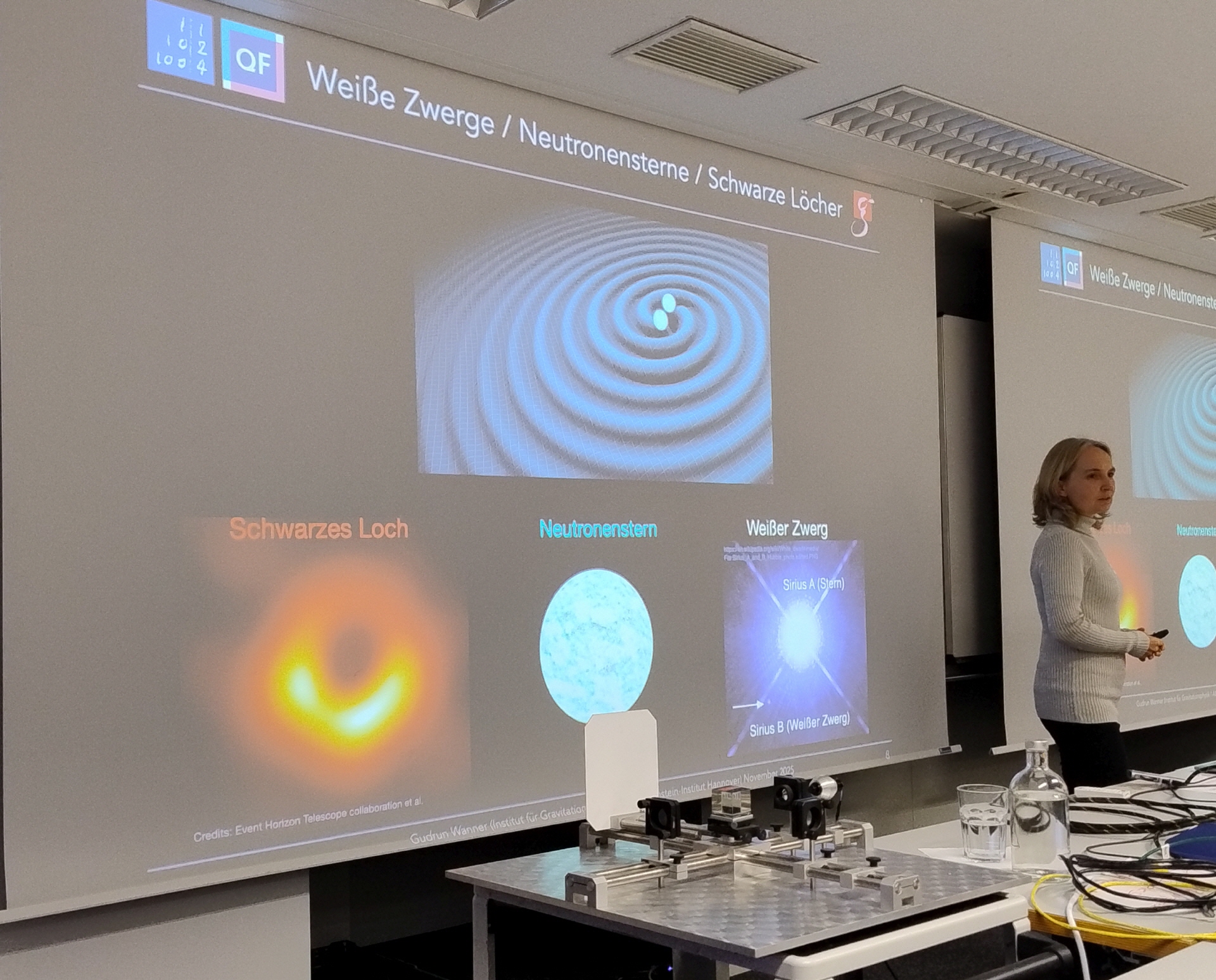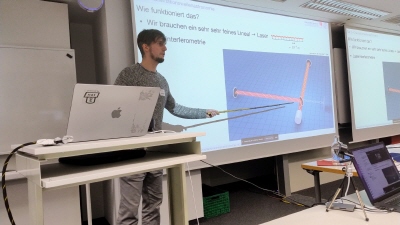 Was die Veranstaltungen am AEI zusätzlich bereichert hat, war die Nähe zur Forschung. Die Vorträge wurden durch, anschauliche Demonstrationen ergänzt, die selbst komplexe Konzepte greifbar machten:
