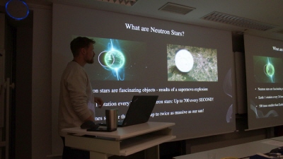 Im Rahmen von „Die Nacht, die Wissen schafft“ entführte uns der britische Astrophysiker Dr. Gareth Cabourn Davies in die Welt der Schwerkraftwellen.