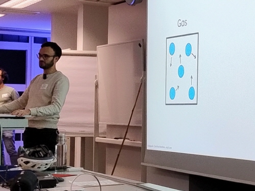 Sein Vortrag befasste sich mit einem besonderen, extrem kalten Forschungslabor am Institut und dessen Relevanz für die zukünftige Gravitationswellen-Astronomie.