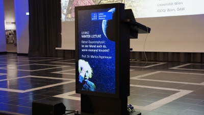 Der Vortrag „Ist der Mond auch da, wenn niemand hinschaut?“ fand wie von Ihnen angegeben am 29. November 2025 um 19:00 Uhr im Lichthof der Leibniz Universität Hannover statt. Der Titel ist ein berühmtes Zitat und eine Metapher aus der Quantenphysik, das auf philosophische und physikalische Grundfragen der Realität abzielt. Der Vortrag behandelte unterhaltsam die Schnittstelle zwischen klassischer Physik, Quantenphysik und Philosophie.